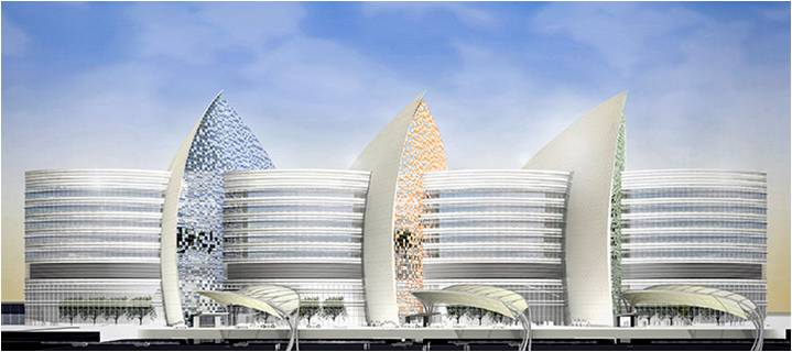 A 264000 square meter Complex comprising of 600 beds with a future addition of 700 beds. The complex includes a large surgical center, a large outpatient department, trauma and emergency center, a burns unit, and comprehensive tertiary services center.